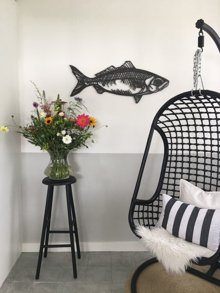 Er valt veel te vertellen over de historie van de boerderij, maar we willen in deze Keukenpraat natuurlijk vooral alles weten over de keuken. “De keuken zat er al in. Hij is wit met een dik zwart aanrechtblad van hardsteen, heel neutraal dus. De vloer was boerderij rood, maar afgelopen voorjaar heb ik de vloer grijs gemaakt met betonverf. Daardoor heb ik veel meer rust gecreëerd in het voorhuis, waar ons hele woongedeelte zit.” Shirley schreef zelf eerder een blog over het bewerken van de keukenvloer en deze lees je hier.