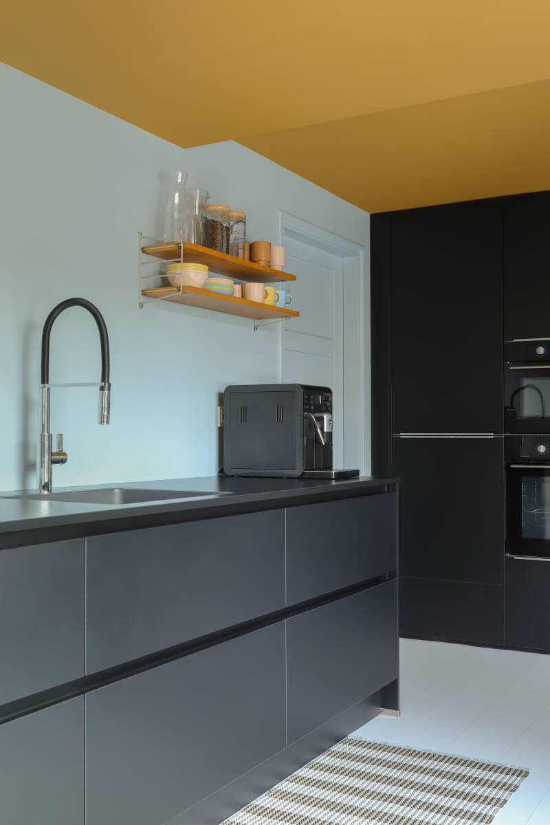 In de zomer van 2017 kochten wij onze gedateerde jaren ’70 woning. Het was het begin van een grote gefaseerde verbouwing en het uitzoeken van een nieuwe keuken stond hoog op het verbouwingslijstje. Het werd een moderne zwarte keuken die een plaats in de nieuw gerealiseerde aanbouw kreeg. De vloer, het plafond en de muren bleven aanvankelijk wit en hierdoor had de keuken een monochroom uiterlijk. In 2020 veranderde dit toen ik het de hoogste tijd vond voor meer kleur in de keuken. Hierdoor sluit deze ruimte nu veel beter aan bij de rest van ons interieur. Via mijn Instagramaccount @deense_zomer krijg ik vaak vragen over onze keuken en de gebruikte kleuren. Het is dus de hoogste tijd dat ik al deze informatie voor jou verzamelde in een blog. Mochten er toch nog vragen onbeantwoord blijven, laat het me dan via de mail weten.